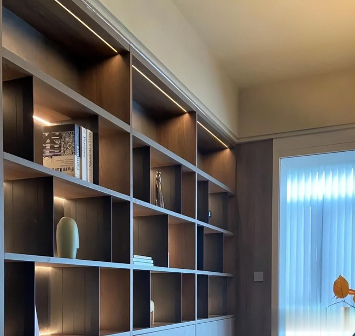 如果你喜欢去收藏酒、装饰品,可以做一排玻璃柜门。