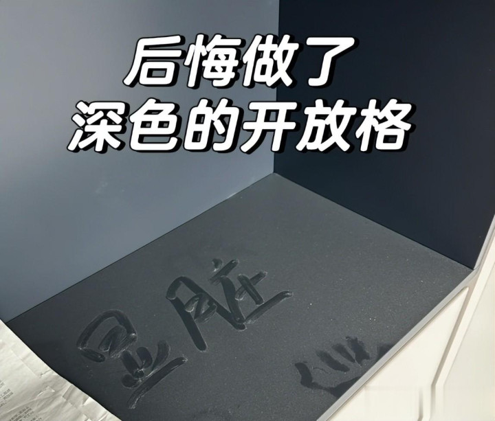 没想到你入住后发现,开放格只要一天不擦表面就一层脏东西,经常开窗户通风,灰尘和毛絮都会飘落在上面,一模一层灰。